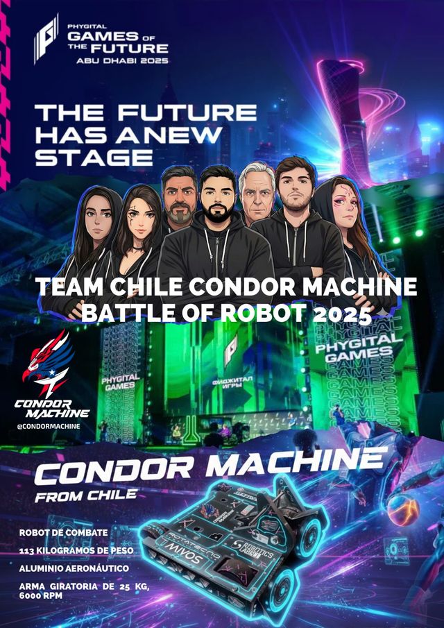 En un hito que dimensiona la capacidad técnica del país, Chile será el único representante de toda Latinoamérica en la categoría más espectacular y desafiante del certamen: la “Battle of Robots”. Este torneo no es una competencia convencional; es la vanguardia del deporte "phygital", una fusión explosiva entre la actividad física y el entorno digital que convoca a miles de desarrolladores de élite. Cóndor Machine se enfrentará cara a cara contra potencias tecnológicas como Estados Unidos, China, Rusia, Reino Unido, Bélgica e India.